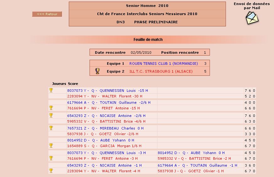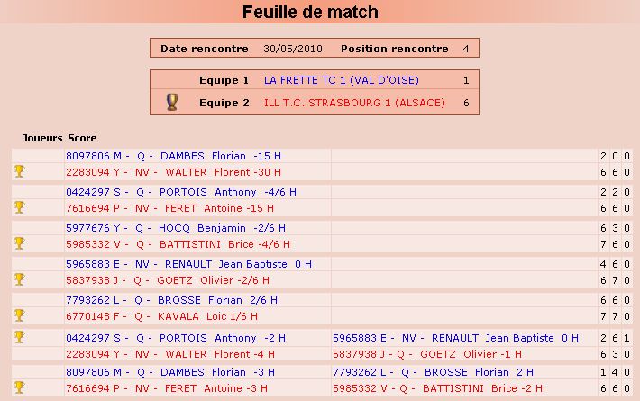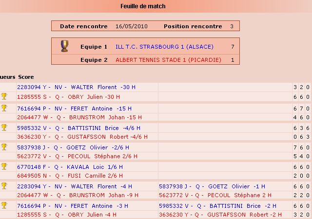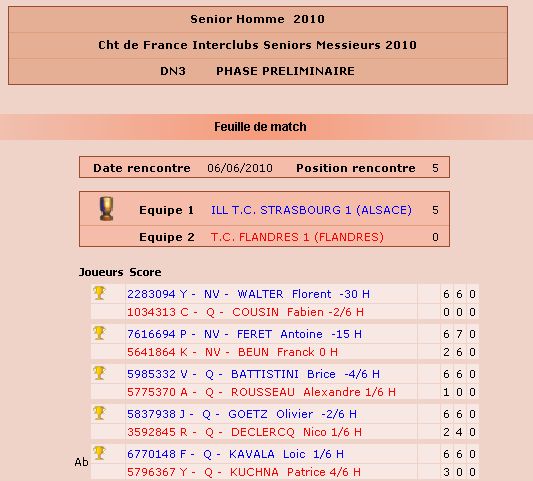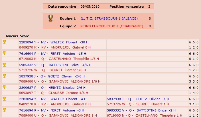 Sur cette page Résultats de mes rencontres de championnats été 2010 Club Ill TC Strasbourg