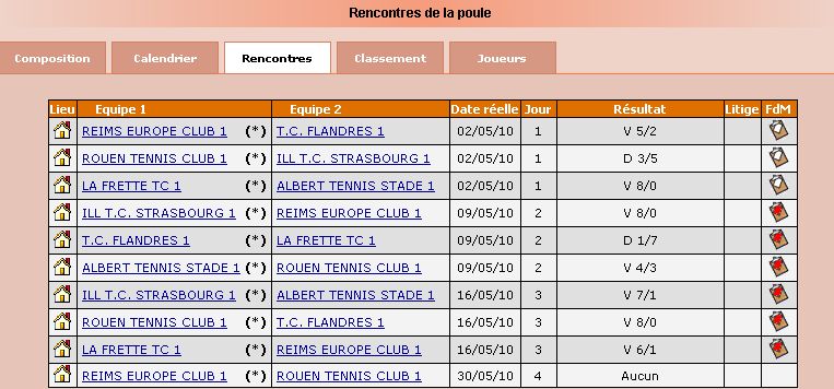 1 ère journée du 2 mai 2010 contre Rouen Tennis Club 1 |
