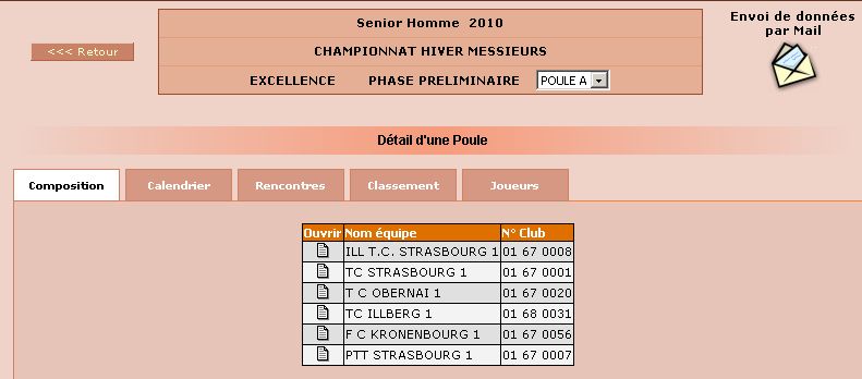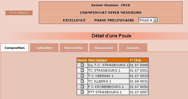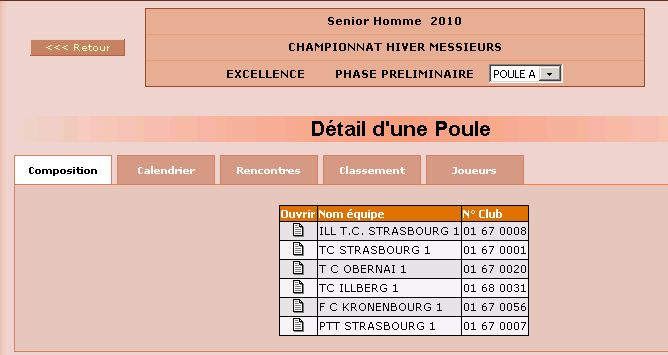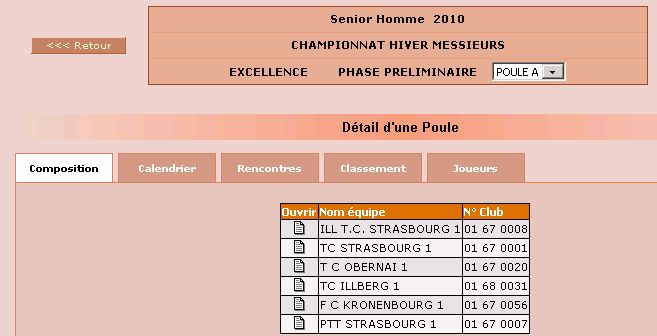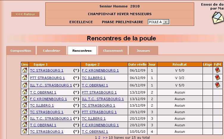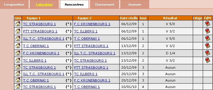 1 ère Journée Championnat Hiver 2010 Equipe Ill TC Strasbourg le 06 décembre 2009
