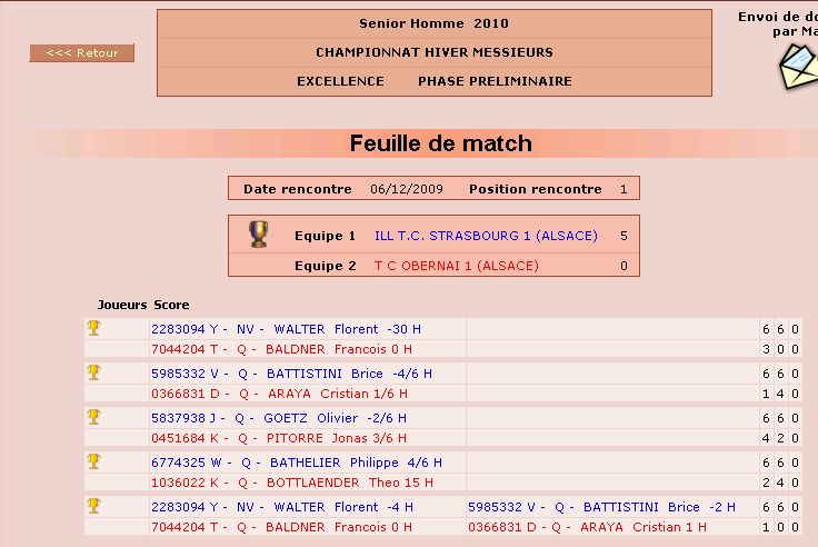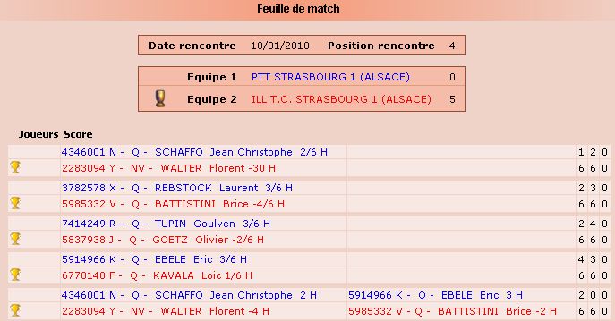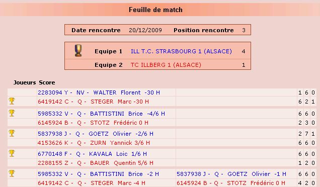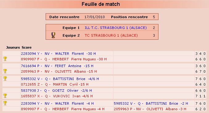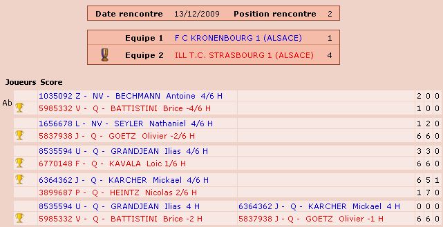 Adversaires et scores ... Bravo à toute l'équipe de l'Ill TC Strasbourg !