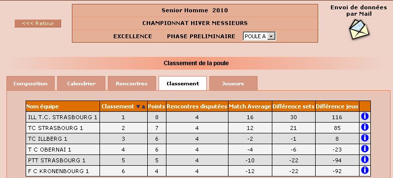 Classement après cette 4 ème journée !Bravo à toute l'équipe de l'Ill TC Strasbourg !