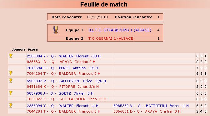 Les rencontres 05 12 2010 contre TC Obernai 1