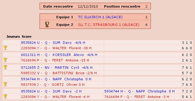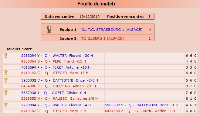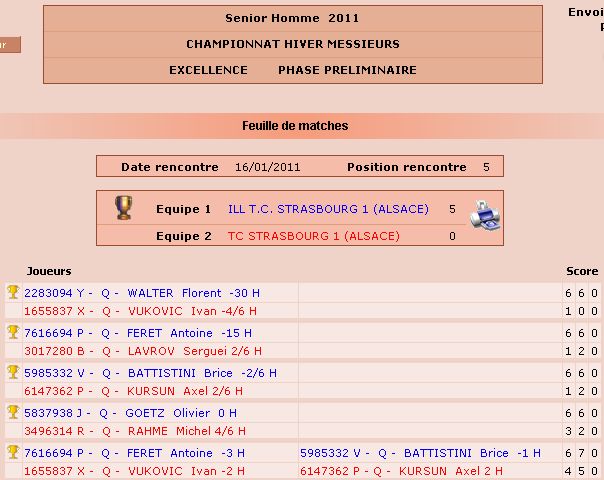 Sur cette page mes résultats championnats Hiver 2011 Club Ill TC Strasbourgde même vous trouverez sur cette page mes résultats tournois Hiver - été 2011