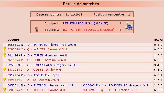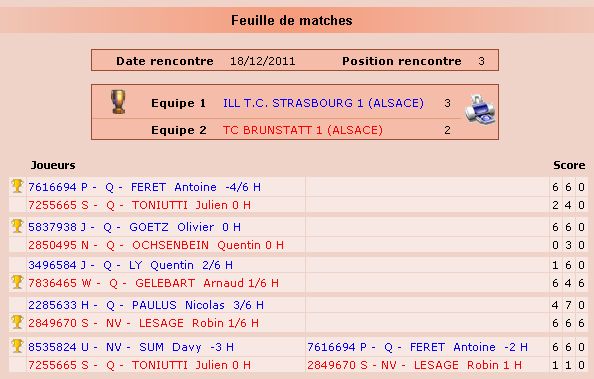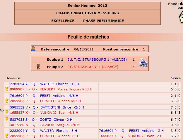 Résultats championnats Hiver 2012Club Ill TC Strasbourg