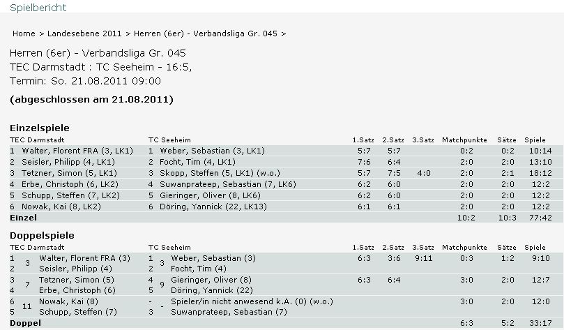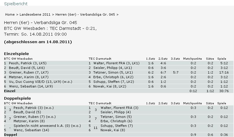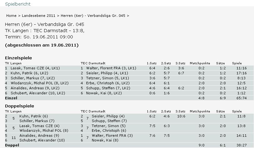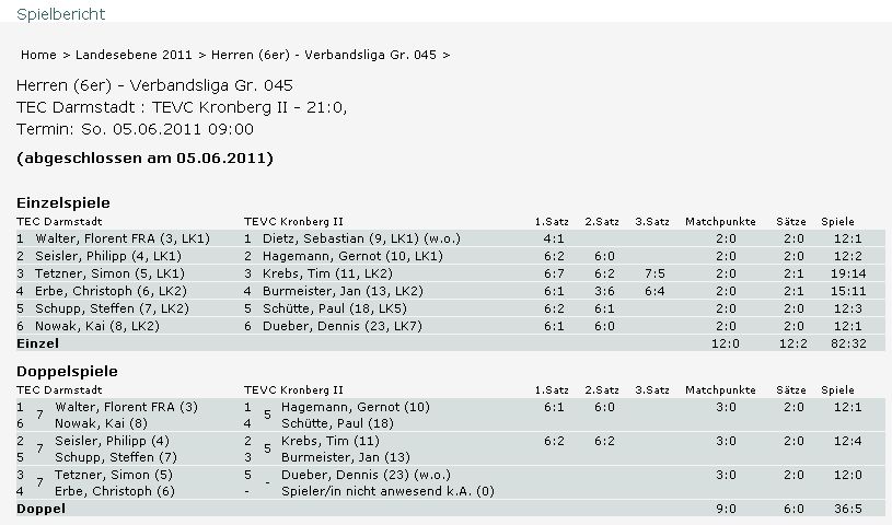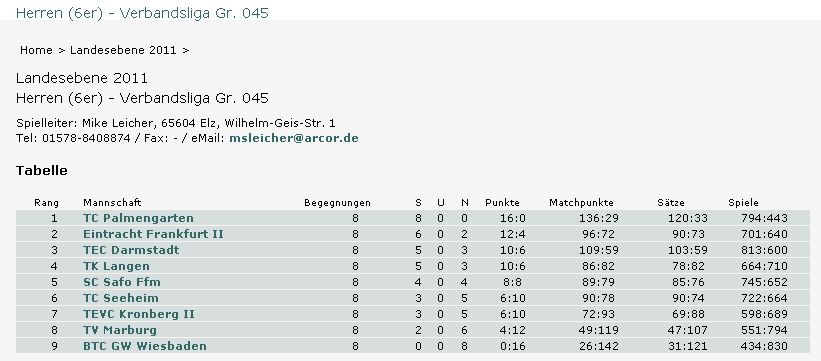 Résultats TEC Darmstadt championnat allemand 2011Classement final ci dessous !